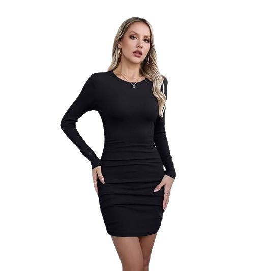 Product information: Color: Black, Silver Waist Style: Mid-rise Size: XS, S, M, L, XL Style Type: Celebrity-inspired casual wear Combination: Single piece Skirt Length: Mini skirt Trendy Element: Pleats Design: Basic style Fabric Name: Milk silk Sleeve Style: Regular sleeve Main Fabric Composition: Polyester Sleeve Length: Long sleeve Skirt Category: Dress Style: Sophisticated lady style